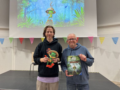 Am Freitag, den 10. Oktober lasen Helge Vogt und ich in der Potsdamer Stadt- und Landesbibliothek aus unserem Buch „Josch der Frosch – Abenteuer im Regenwald“. Im Anschluss zeigten wir den kleinen und großen Besuchern wie man als Autor eine Geschichte entwickelt und als Zeichner dazu dann die Bilder erstellt.